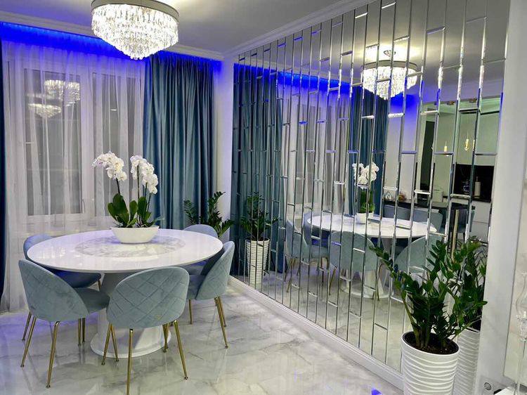 • Зеркальное панно в кухне-гостиной